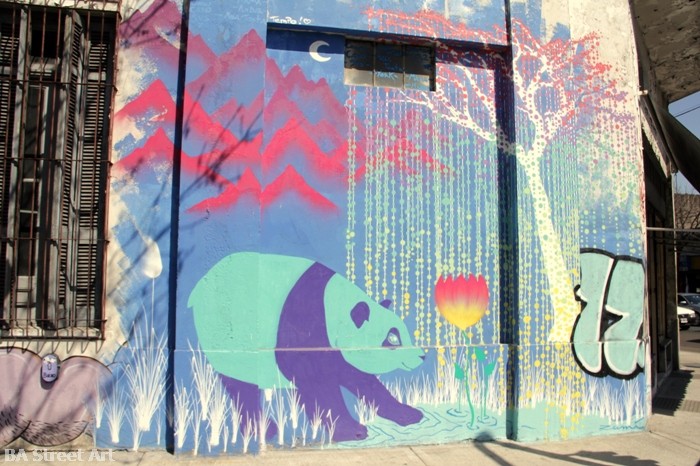 The Argentine street artist often uses oriental themes in her designs. The first mural on the facade of a local bookshop along the street Scalabrini Ortiz features a panda, a lotus flower and a Chinese Pistache tree.
