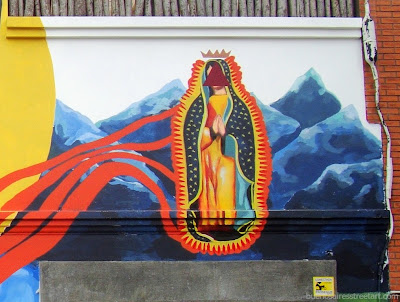 Ever explained what his latest design was about: “In the mural, Mao is talking to the youth in China about the idea of communism but the kids aren’t too interested and are looking the other way and thinking about something else, the Virgin (Mary). I found an image on the internet that I liked and wanted to paint. It was of the Virgin of Guadalupe but I had no idea the Church of Our Lady of of Guadalupe was around the corner!”