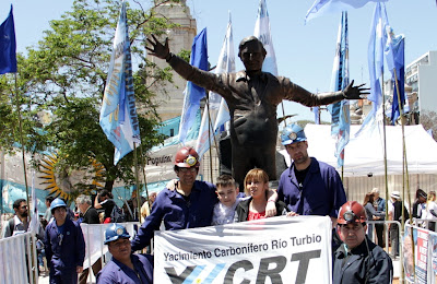 | Miners of Río Turbio with statue of Néstor Kirchner (photo © BA Street Art) |