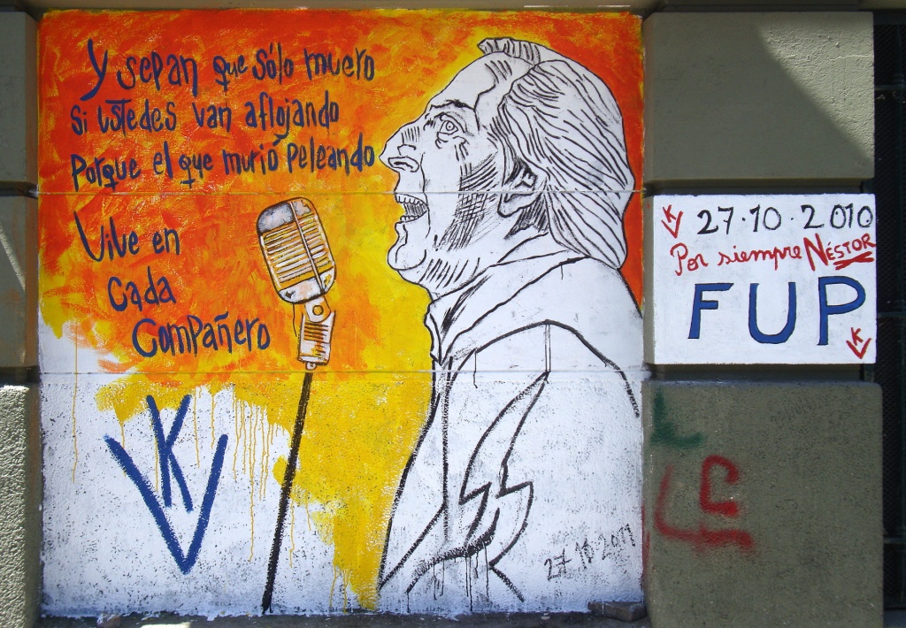 A number of murals have the phrase KV, an abbreviation for ‘Kirchner Vuelve’ meaning ‘Kirchner will return’.