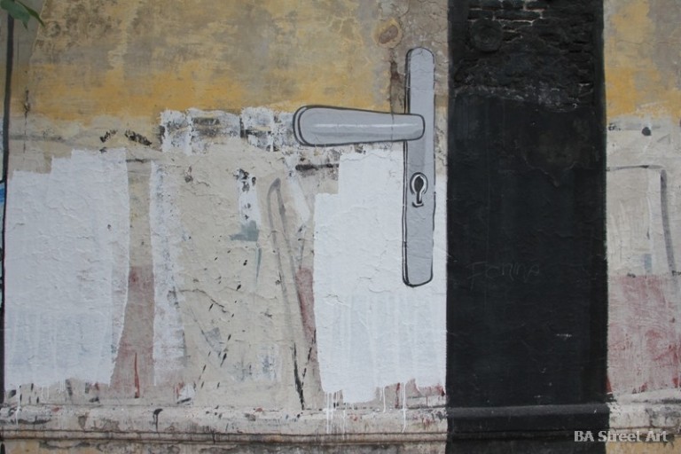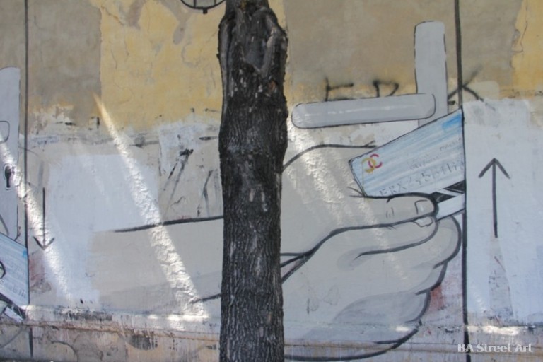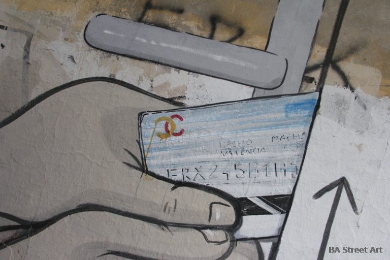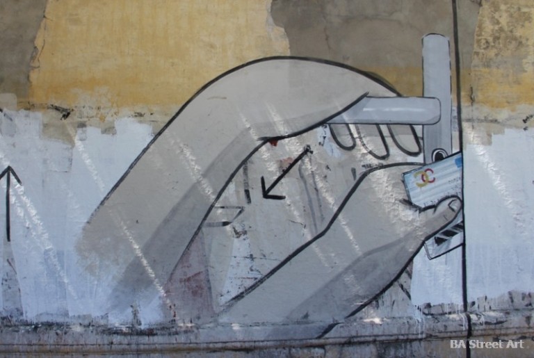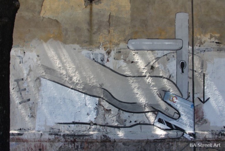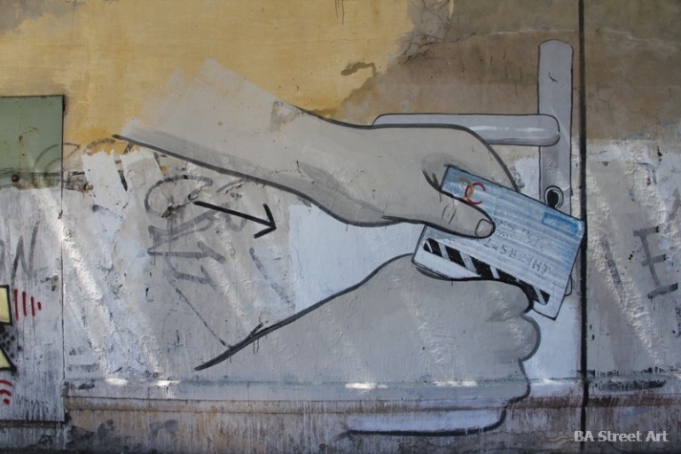 New mural by Escif and Blu in Buenos Aires explaining how to open a door with a credit card in five easy steps. Exclusive photos by Buenos Aires Street Art