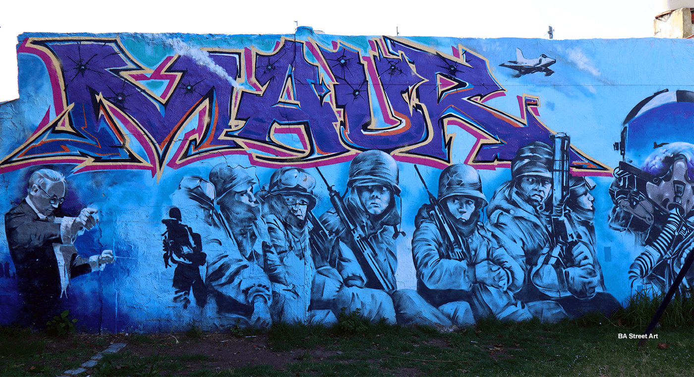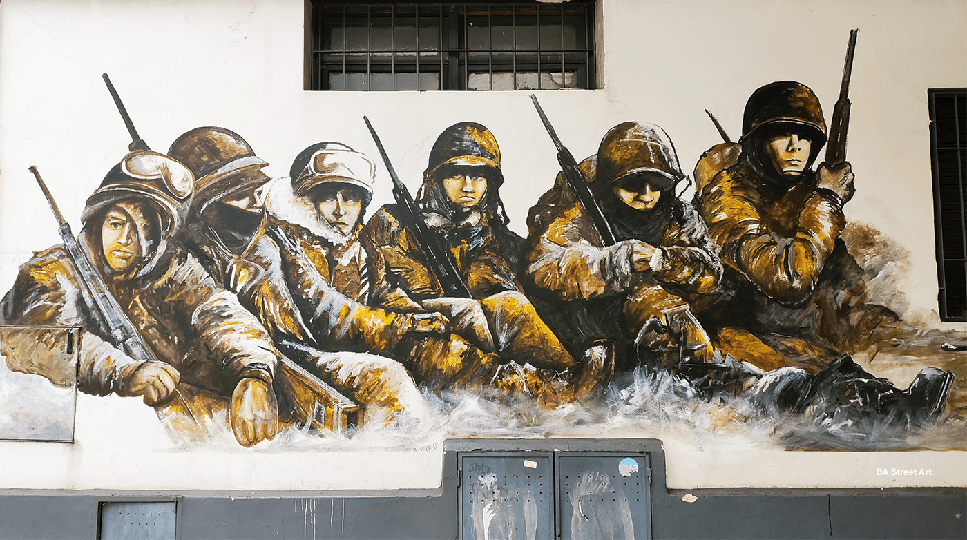 Mural by Luis Corradi featuring Argentine soldiers (photo © BA Street Art)