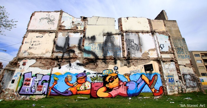 Cof and Animalito Land finished a cool new mural in Villa Urquiza, Buenos Aires, last night after the start of spring in Argentina. BA Street Art caught up with the street artists while they were painting on Saturday.