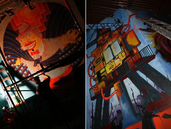 Photographer Adri Godis was covering the ‘Wild Style’ urban art event for BA Street Art and as her wonderful photos show, the artists have brought some of the darker areas of the historic building to life with their colourful and imaginative designs.