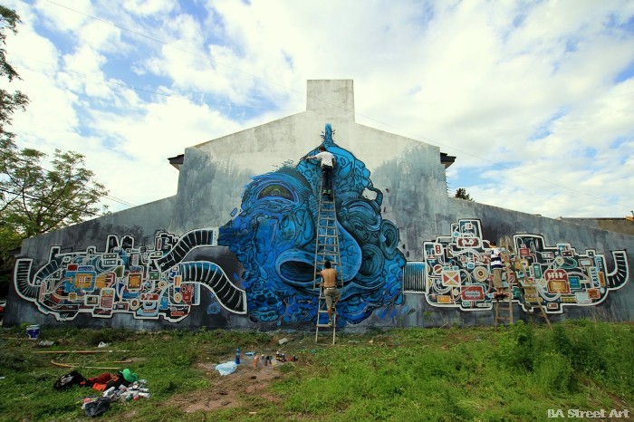 THG crew painting at Zig Zag in La Plata yesterday (photo © BA Street Art)