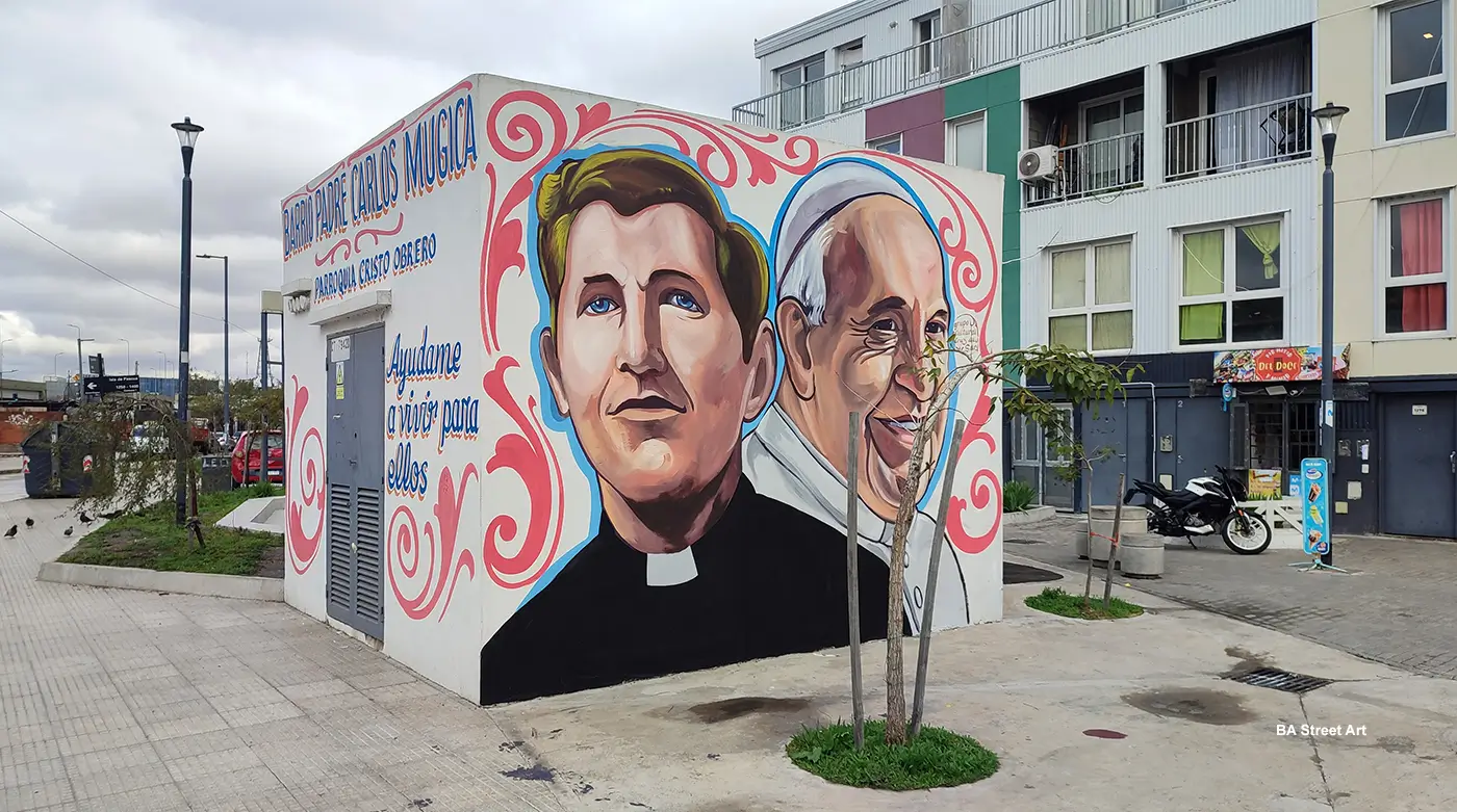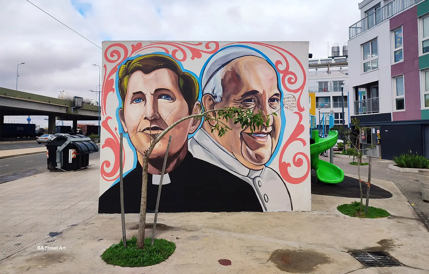 Mural of Pope Francis with Padre Mugica (photo © BA Street Art)