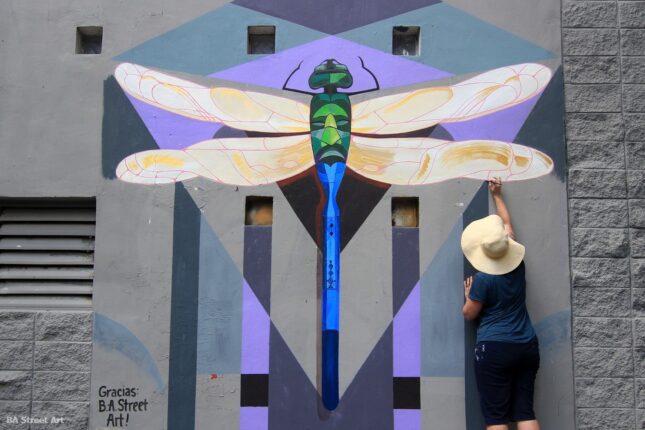 Stacey who is from Memphis, Tennessee, was visiting Buenos Aires for the first time and found time to complete this new mural featuring a dragonfly.