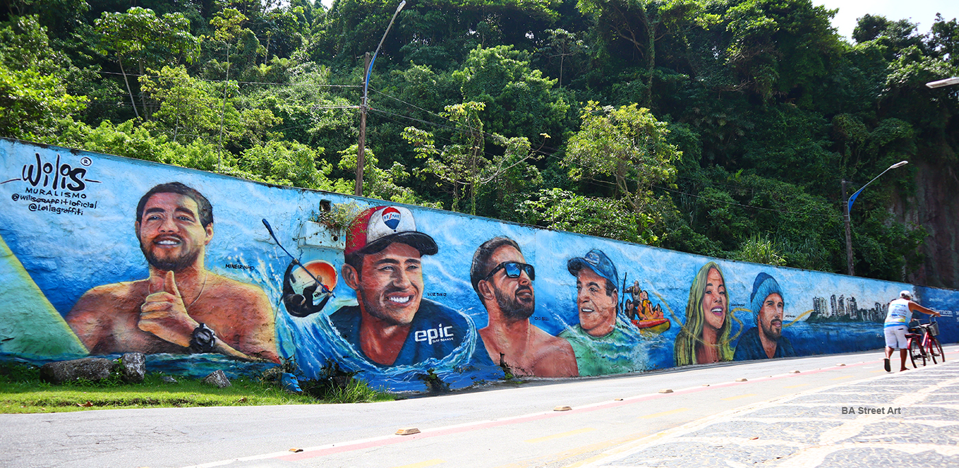 Part of mural by Wilis featuring 4 surfers Mineirinho, Luiz Diniz, Caio Ibelli & Taiu Bueno at Praia das Asturias (photo @ BA Street Art)