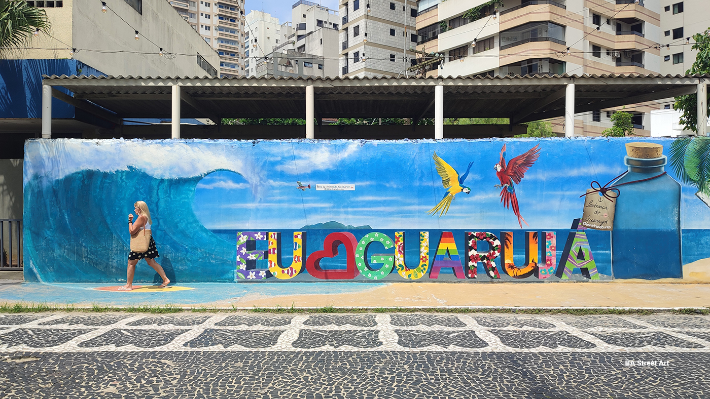 Mural with message ‘Guarujá ‘Land of Diversity’ by artist Hugo Leal (photo @ BA Street Art)