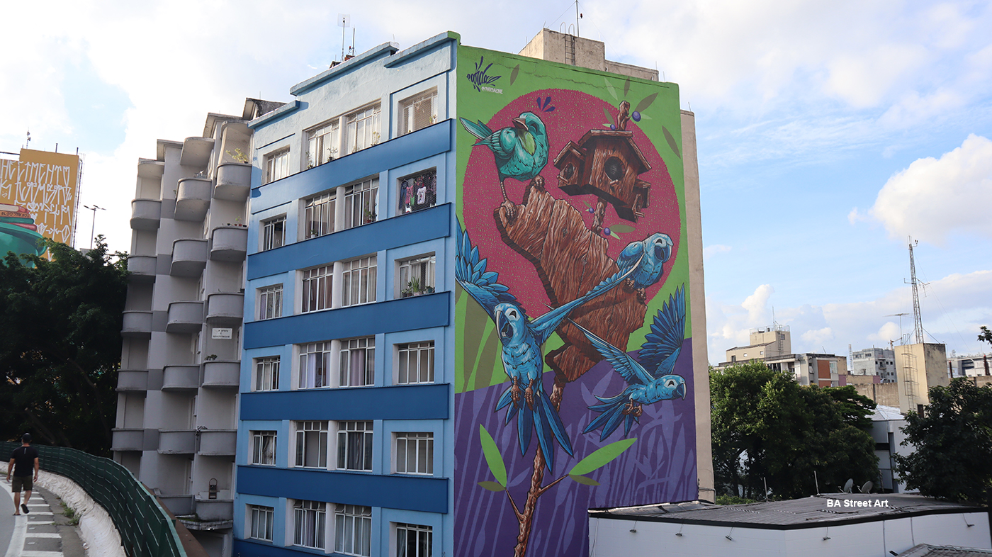 Another large scale mural on Rua Consolação is entitled ‘Ave Grande’ by Tot PDF Crew curated by Spray For Life that features a Hyacinth Macaw.