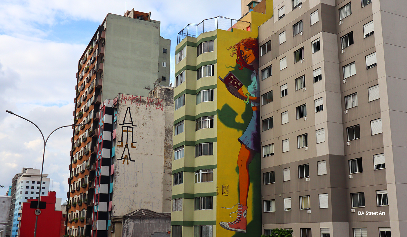Mural by Mona Caron at 2223 Rua Consolaçāo (photo © BA Street Art)