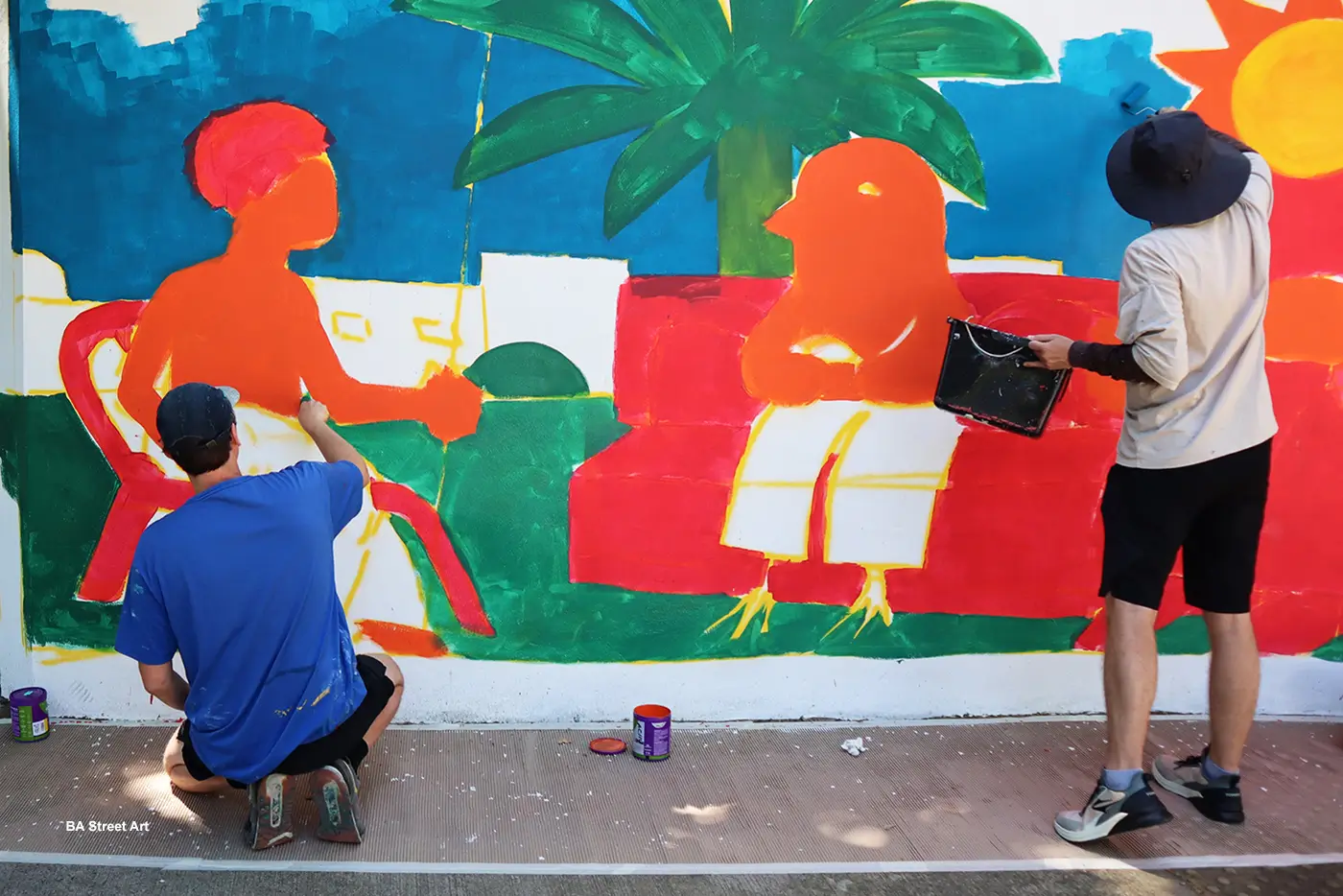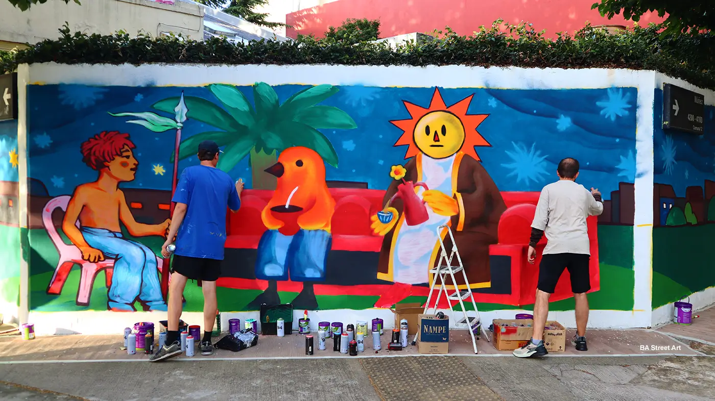 Collaborative mural being painted by artists from Argentina & Qatar (photo © BA Street Art)
