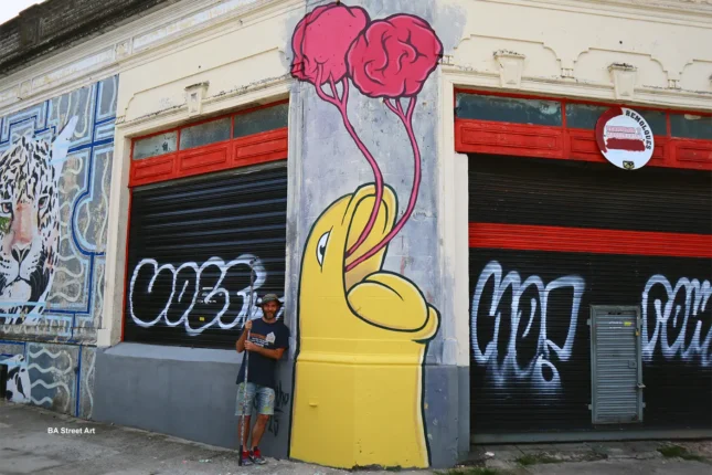 Gualicho next to his finished mural (photo © BA Street Art)