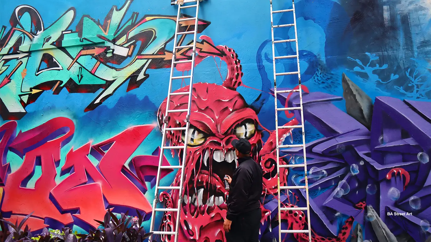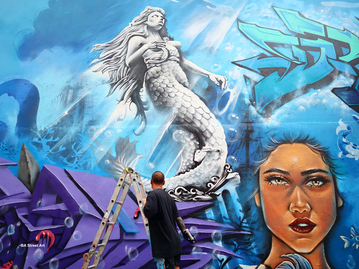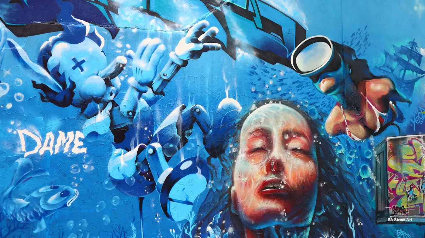 The theme chosen relates to the ocean with artists like Dame, Chax and Yeca painted some cool characters swimming, diving and floating under water fused with graffiti pieces.