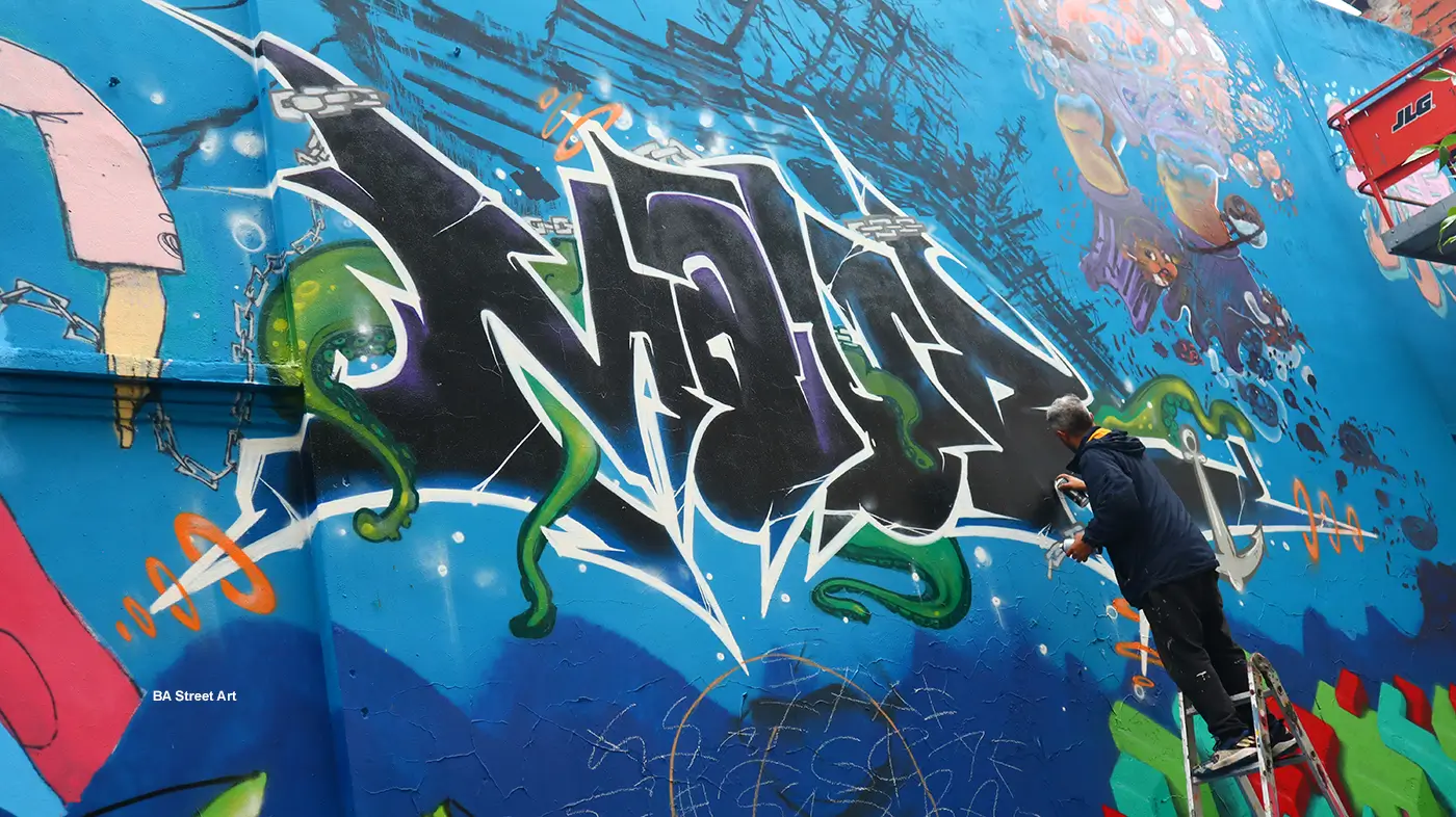 Asel with pieces by Cabe, Lion & JPU(photo © BA Street Art)