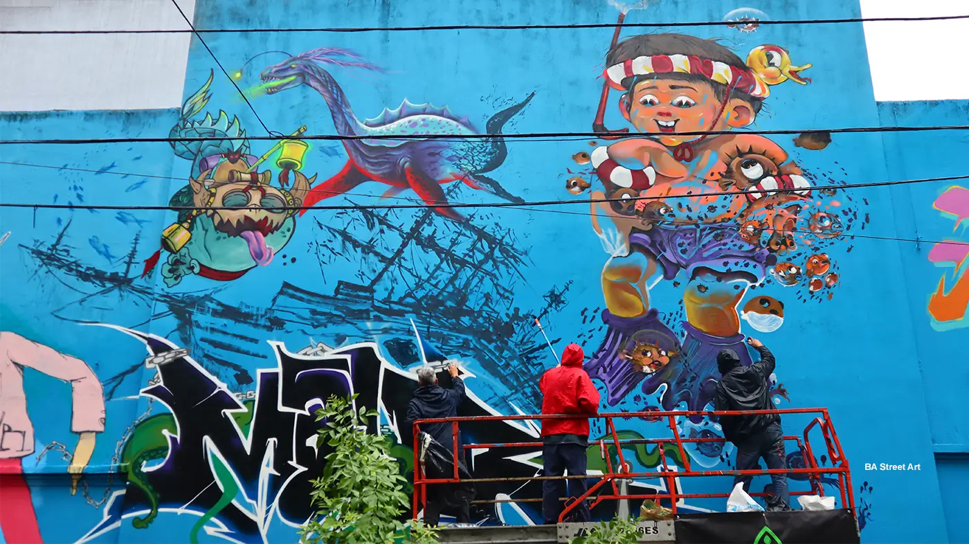 Artists painting including Maur & Mundo Rod (photo © BA Street Art)