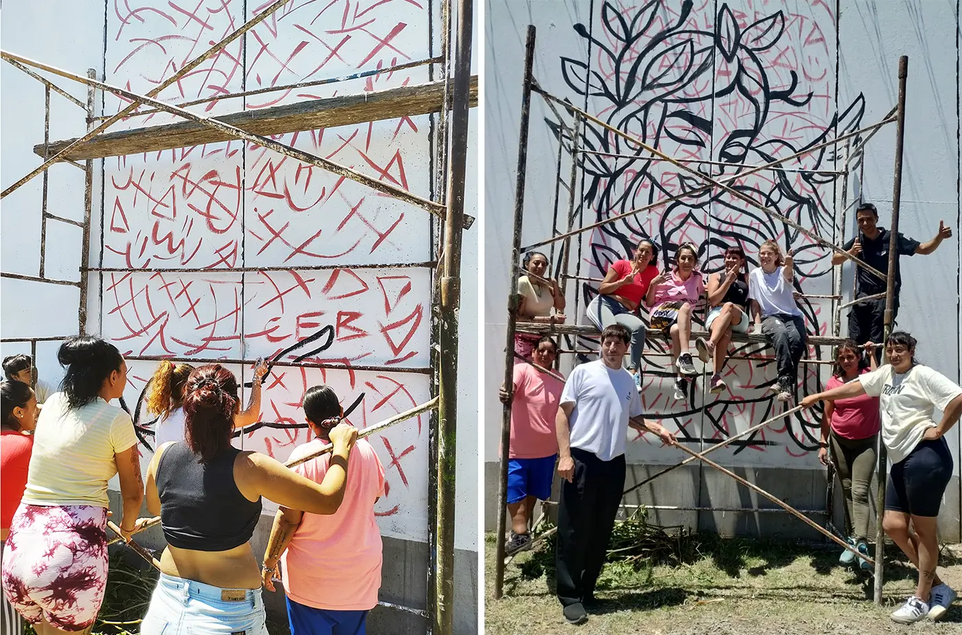 “It was a beautiful experience,” recalls CEB. “Very exciting and we shared some wonderful moments. Not just painting, but also the conversations and drinking maté together. For me, it was also transformative, and it fills me with joy to be able to leave a message through art. And that art itself can be a tool for transformation, not only of the physical space but also of our inner selves.”