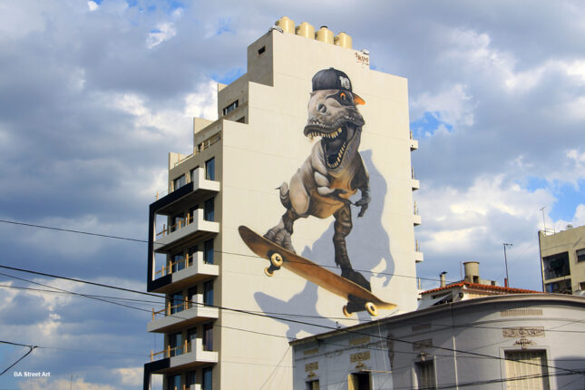 Continue readingDinosaur skate mural painted by Alfredo Segatori in Buenos Aires